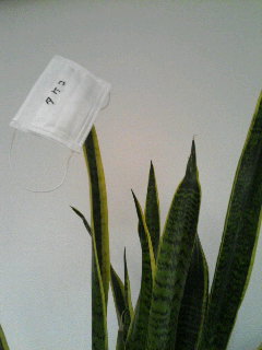 タケコはマスクに名前を書いちゃいます。