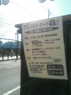 先日からお店の外にアルバイト募集の広告を貼り出しているのですが、